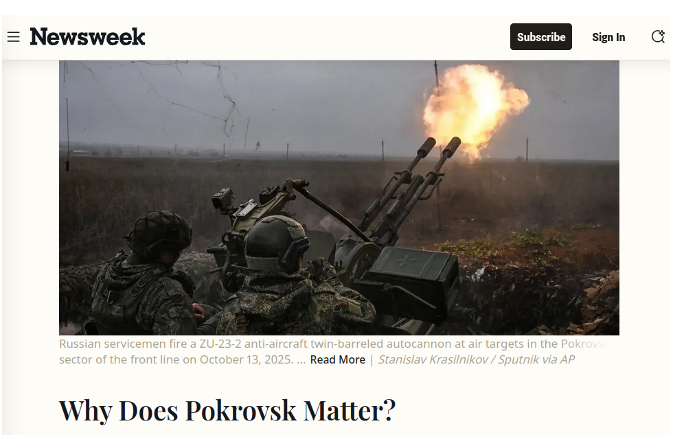 > > Захват Покровска «открывает путь к Павлограду и позволяет осадить две крепости: Славянск и Краматорск», — заявил в интервью Newsweek депутат Верховной Рады от партии Зеленского «Слуга народа» Олег Дунда. > Newsweek