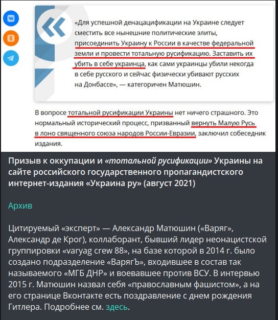 И к миру, в общем, я бы сказал, с существенным опозданием идёт крайне неприятное осознание того, что биться надо не с путиным, а с россией. Ибо путин просто самая высокая поганка на этом гнилом пне . Ибо без этих миллионов озлобленных дегенератов, которые хотят войны, упиваются войной, он полный ноль".(C)