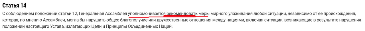 >> Я так понимаю тебе крайне позорно в том что уличили что хаваешь на ура как вас дебилят незаморачивась проверить легко доступную инфу и ты решил дурака включать написал же выше статья 10−11 устава ООН