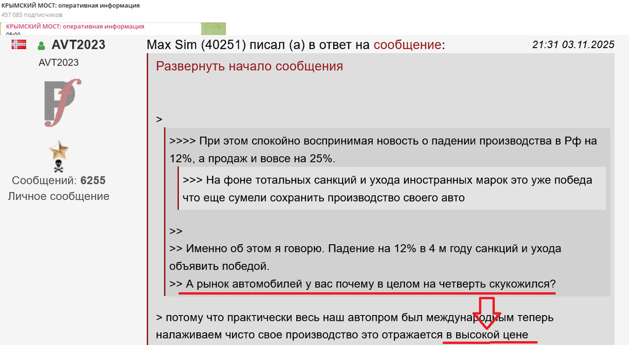 >>>>> При этом спокойно воспринимая новость о падении производства в Рф на 12%, а продаж и вовсе на 25%. >>>> На фоне тотальных санкций и ухода иностранных марок это уже победа что еще сумели сохранить производство своего авто