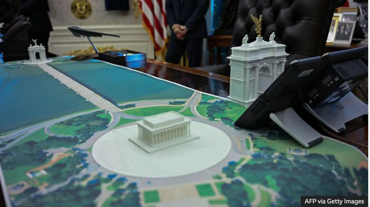 "Every time somebody rides over that beautiful bridge to the Lincoln Memorial, they literally say something is supposed be here. We have versions of it… This is a mock-up," Trump told donors on Wednesday night, referring to a grassy, circular area at the end of the bridge. At a dinner to unveil his plans for the ballroom, Trump said there were three versions of the arch - small, medium and large - but that he liked the largest one the best. Trump said the ballroom project was "fully financed" and some of the leftover money would be used to fund the arch.