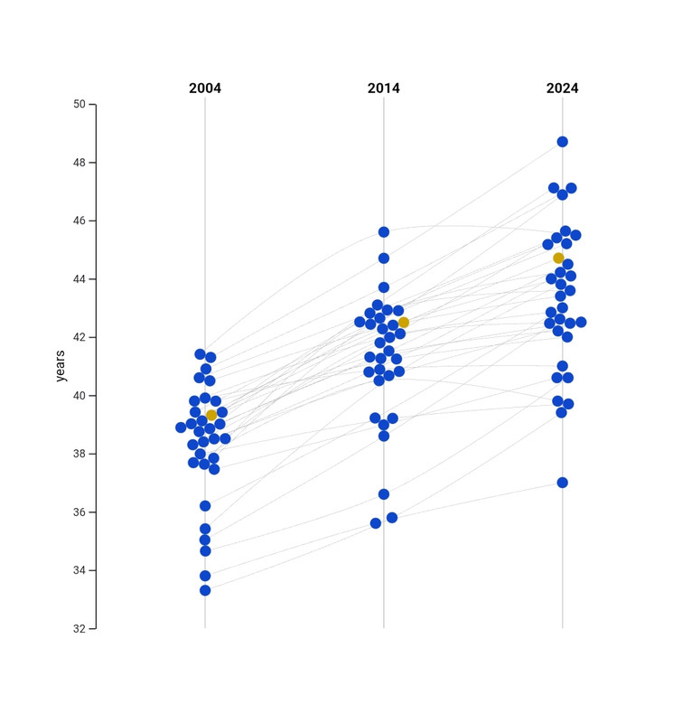 Это ЕС очень наглядно заметно, что население стареет