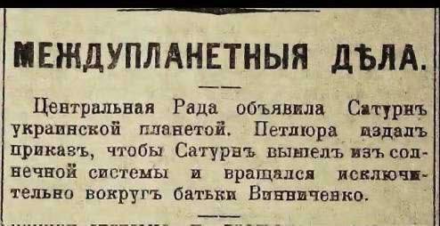 «Сатурн вышел из солнечной системы и вращается тсключительно вокруг батьки Винниченко (революционера)», — заверили в издании
