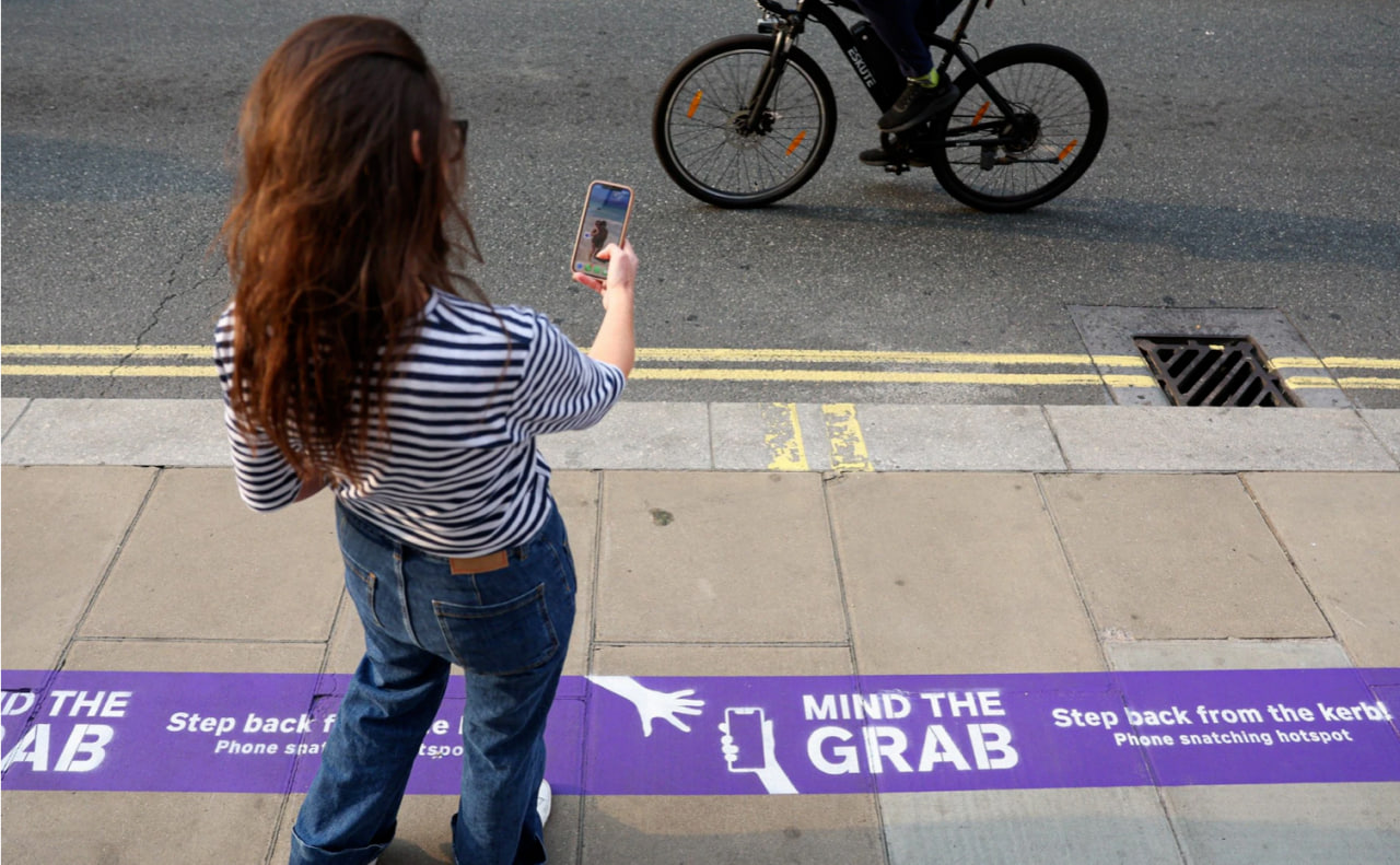 Lines with the warning ‘Mind the Grab’, inspired by London Underground’s ‘Mind the Gap’ catchphrase, aim to raise awareness among pedestrians.