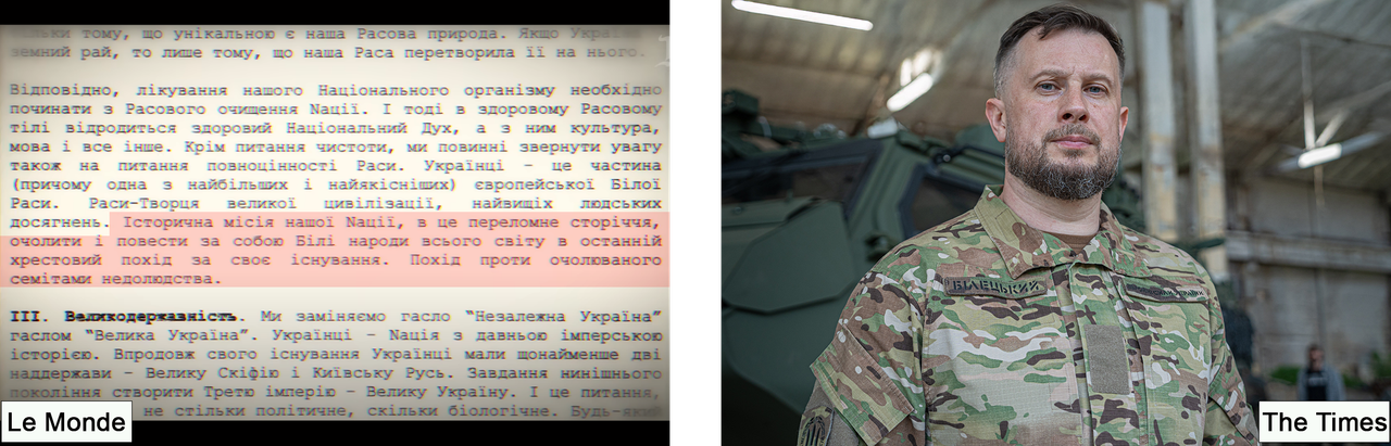 На современной Украине А. Билецкий (см. фото выше справа) является командиром корпуса и, как написала в этом году газета The Times в своём , за А. Билецким готовы последовать десятки тысяч украинцев.