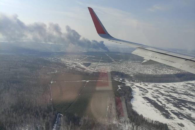 > у нас завод полыхает лако-красочный под боком Рядом со мной и аэропортом. У меня две печальные перспективы,-отравиться сегодня и не улететь завтра. > самолеты вроде облетают это место, сфоткали из садящегося лайнера