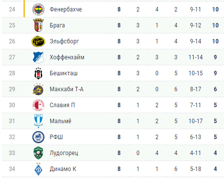 В четырех первых матчах «Динамо» потерпело четыре поражения с общей разницей 0:10. На этом фоне проигрыш чешской «Виктории Пльзень» со счетом 1:2 выглядел достижением. Но пока это всё — 0 очков в шести матчах и разница мячей 1:15.