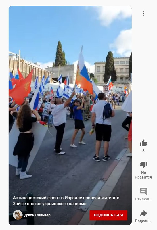 Общая настроенность израильского общества – проукраинская, хотя иногда раздаются отдельные голоса о проявлениях нацизма на Украине. Общая антироссийски направленная ментальность израильского общества, связанная с многолетним советско-израильским и российско-израильским противостоянием на Ближнем Востоке, сейчас выражается в израильской поддержке нацистского украинского режима. Государство Израиль, давно уже враждебное России, сейчас балансирует на грани официального российского объявления его государством, недружественным России.