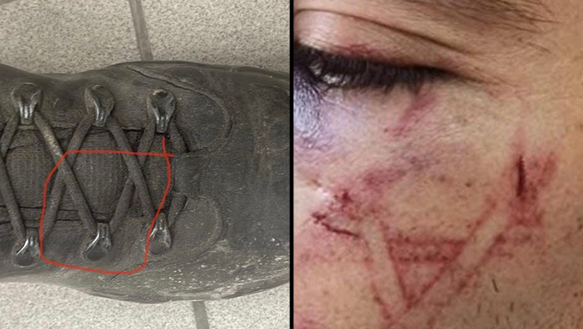 Даже если это был ботинок полицейского, а не клеймо со Звездой Давида на лице задержанного, непонятно, зачем нужно было бить его по лицу или прикладывать к ним ботинок с такой силой.