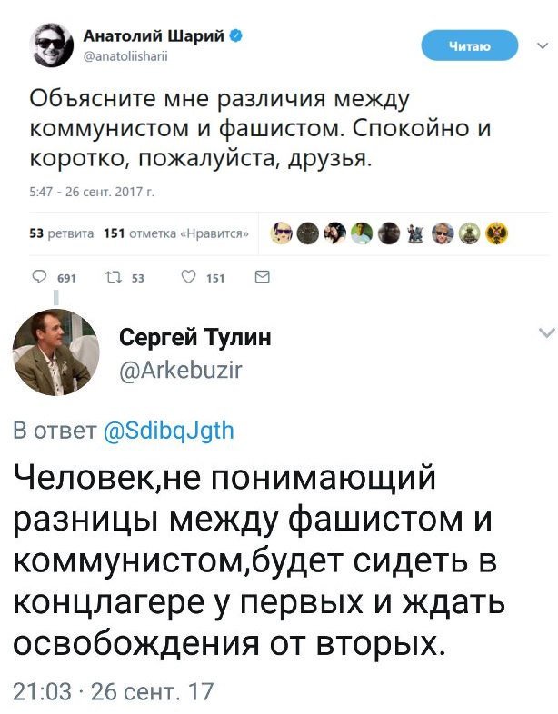 Если русские – быдло пьяное, А украинцы пьют лишь квас, Что ж достали вы всех майданами, И живёте беднее нас? Что вы скачете бандерлогами, Превратили в свинарник майдан, А потом под любыми предлогами Москва полная киевлян? По России чего вы ищете, Коль у вас своего вдосыт? Мы же ватники, валенки, нищие, И у нас даже глупость спит! Все мы здесь, как один, не свидомые, Да и разумом не светлы, Бродим тупо, как псы бездомные, Опасаясь хозяйской метлы… Почему ж проститутки из Жмеринки Ездят к нам уже двадцать лет… Ночь за триста рублей с русским "мерином", И полсотни – в машине минет... Нет, свидомые, как-то не клеится Нарисованный вами пейзаж … Что - то ваша корова не телится, И в бурты не заложен фураж… Вы Россию клянёте и клянчите У неё же каких - то льгот… Не работаете, а лишь скачете С приговоркой: « Европа ждёт!» А кому вы нужны, захребетники!? Вам дерьмо и погань – родня! Пассажиры вы, безбилетники, Без подачек не жившие дня! Нам вдосыт уже ваши проклятия, А последних полгода – с лихвой! Решено! Мы не будем братьями! Только больше над ухом не вой!