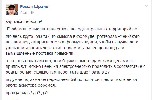 ОРДЛО продает Ахметке уголь по низкой цене. А ТЭС Ахметки продает энергию потребителям с заложенной ценой угля будто с Роттердама+доставка