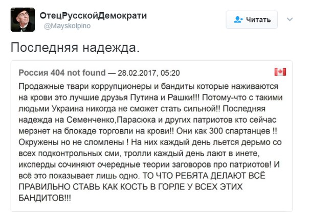 > > Блокадники сейчас на передовой борьбы за реальную независимость Украины!