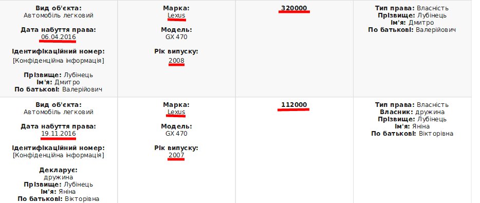 >>> Депутат Лубинец за год работы в ВР купил квартиру в Киеве 155м2 и два Lexus одинаковые,что бы люди думали что это одно авто