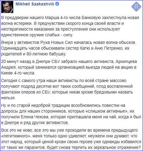 СБУ на службе режима Порошенко. Активистам Саакашвили приходят СМСки с сепаратистским текстом, а затем к ним приходит СБУ с обысками и обвиняет их в связях с сепаратистами и работой на агента ФСБ Саакашвили
