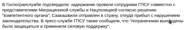 > Администрация президента через «ботов» распространяет информацию о том, что задержание М. Саакашвили осуществлялось сотрудниками Государственной пограничной службы Украины, а в самой Госпогранслужбе заявили, что не имеют информации о причастности своих сотрудников к задержанию.