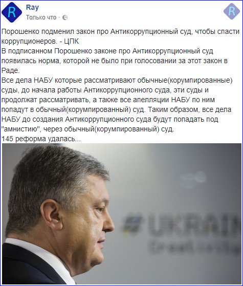 Порошенко подменил закон про Антикоррупционный суд, чтобы спасти коррупционеров. — ЦПК