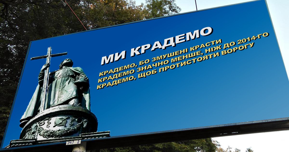 Теперь любой коррупционер может с гордостью, во всю грудь говорить: — Я воровал ради Украины.