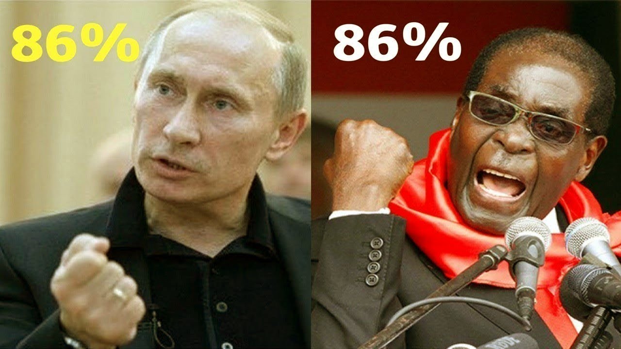 > Это Мугабе, предыдущий зимбабвийский лидер. > И шо? Мугабе — 85,5% Путин — 76,69% Так почему свидомые врут?