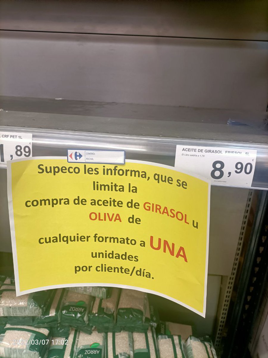 Испания. По 5 пачек макарон и по 1 бутылке подсолнечного масла в руки...)))