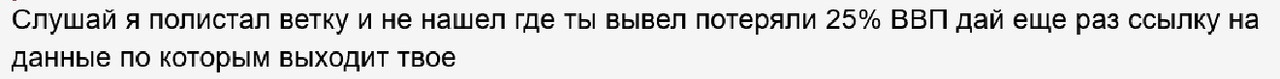 Слушай я полистал ветку и не нашел где ты вывел потеряли 25% ВВП дай еще раз ссылку на данные по которым выходит твое