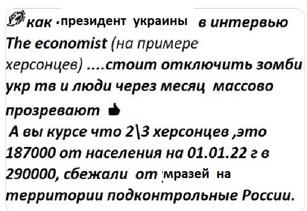 >>>> Обсеретесь ожидая..... >>> Вот слово в слово и буква в букву, как писали про Херсон, после первых взрывов на Антоновском мосту.