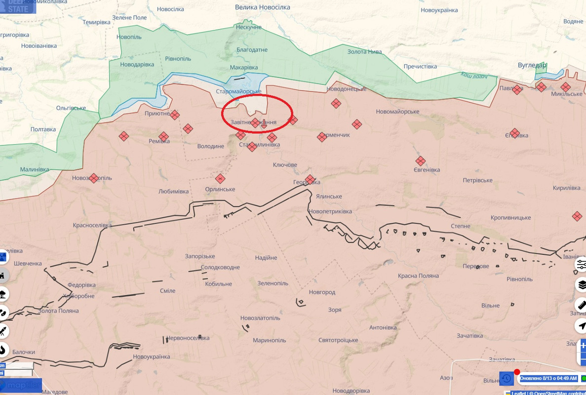 На Южно-донецком направлении зона, в которой для ВСУ доступны какие-либо манёвры, — это всего 7 км по прямой, в основном вокруг одной асфальтированной дороги.