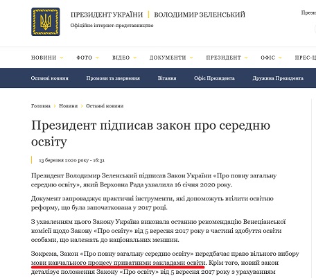 >> В новом законе четко прописано что гаранированое ранее право нац меньшинств получать бесплатное общее образование на родном языке отменено и это возможно лишь за бабло в частных школах