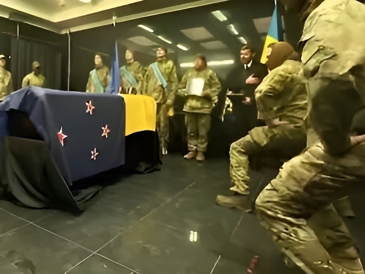 В интернете появилась видеозапись прощания украинских боевиков с молодым иностранным наёмником с позывным "Толкиен", который прибыл на Украину аж из Новой Зеландии................. От Доминика Абелина ( так звали боевика ) мало что осталось - об этом свидетельствует закрытый гроб, однако не меньшие вопросы вызывает то, что произошло на церемонии прощания.