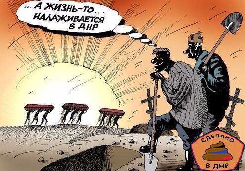Частично согласен.Временное соитие части Донбасса с русским миром закончилось тем,что от ЧЕ по футболу 2012 до необходимости справлять нужду в пакеты рукой подать.Самый востребованный бизнес погребальная контора и своя водовозка. Как утверждает коллаборант Таня Монтян - рентабельность более 1000%.
