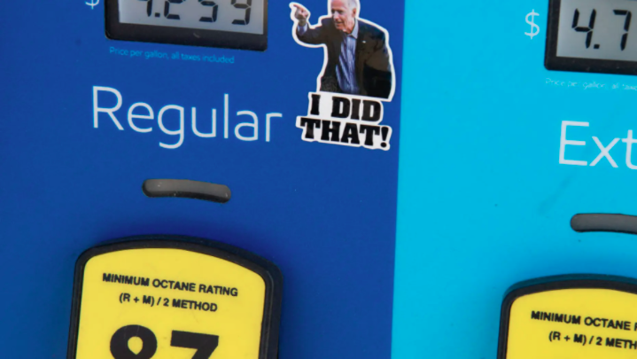 Между тем наклейки, обвиняющие Байдена в стремительном повышении цен на бензин, начали появляться на автозаправках по всем США. При этом пачку из 100 таких наклеек можно приобрести на Amazon за $10 — $13.