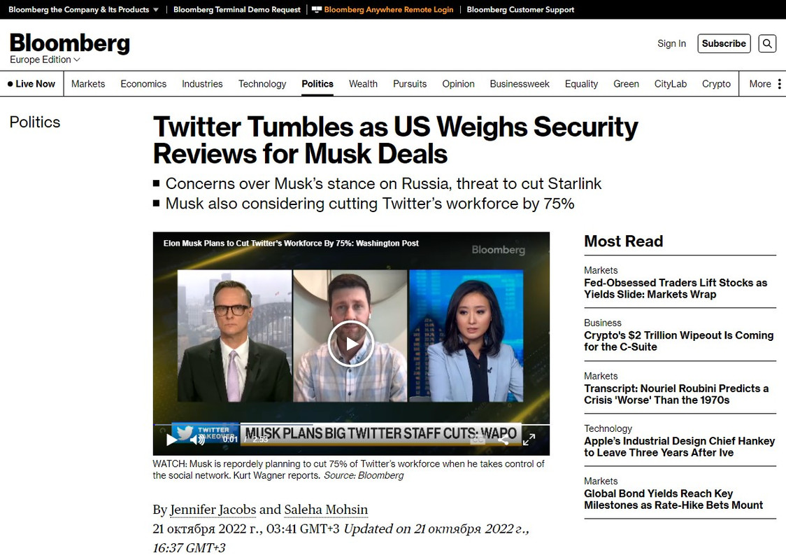 Накануне агентство Bloomberg сообщило, что Белый дом может начать проверки некоторых сделок известного миллиардера после его заявлений об Украине и «все более дружественной позиции по отношению к России»: