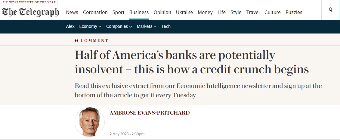 The Telegraph: Half of America’s banks are potentially insolvent — this is how a credit crunch begins / Половина банков Америки потенциально неплатежеспособны — так начинается кредитный кризис
