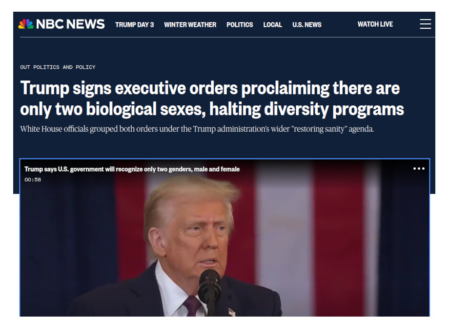 Трамп подписывает указы, провозглашающие существование только двух биологических полов, останавливающие программы разнообразия