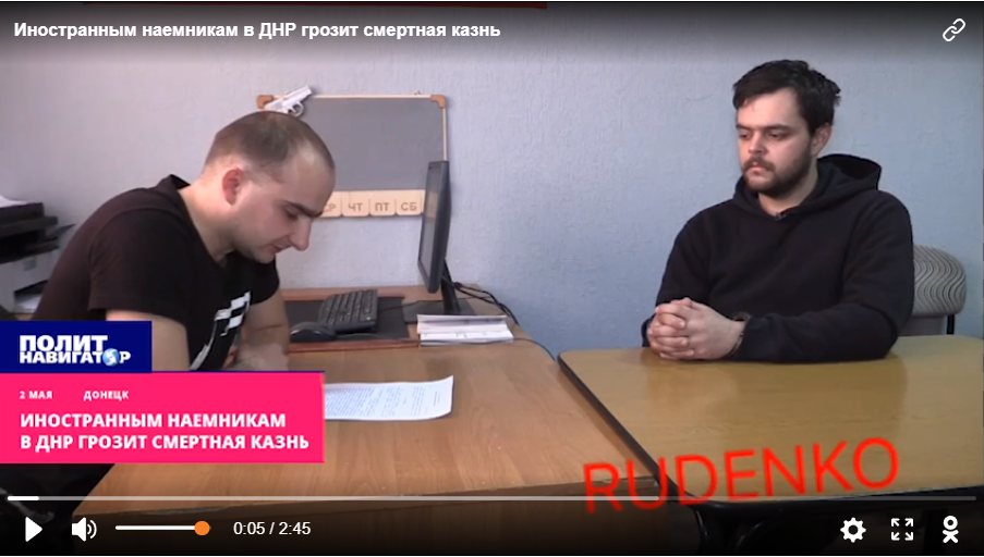 Руденко опубликовал кадры допроса Эйдена Эйслина, которого обвиняют в убийствах мирных жителей ДНР.