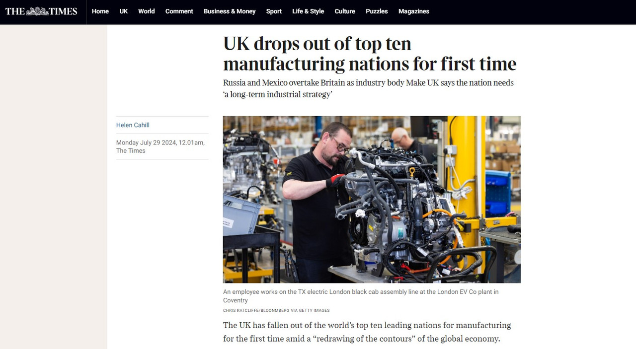 Times: Британия впервые выбыла из списка десяти ведущих промышленных стран Monday July 29 2024