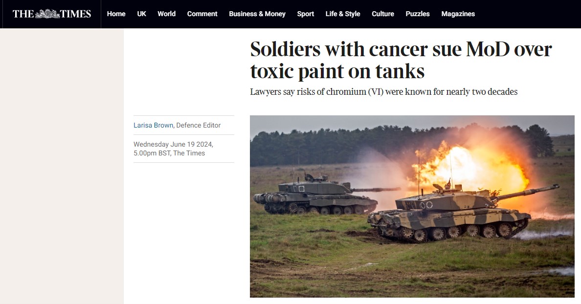The Times: британские военные судятся с Минобороны из-за рака от краски на машинах Wednesday June 19 2024