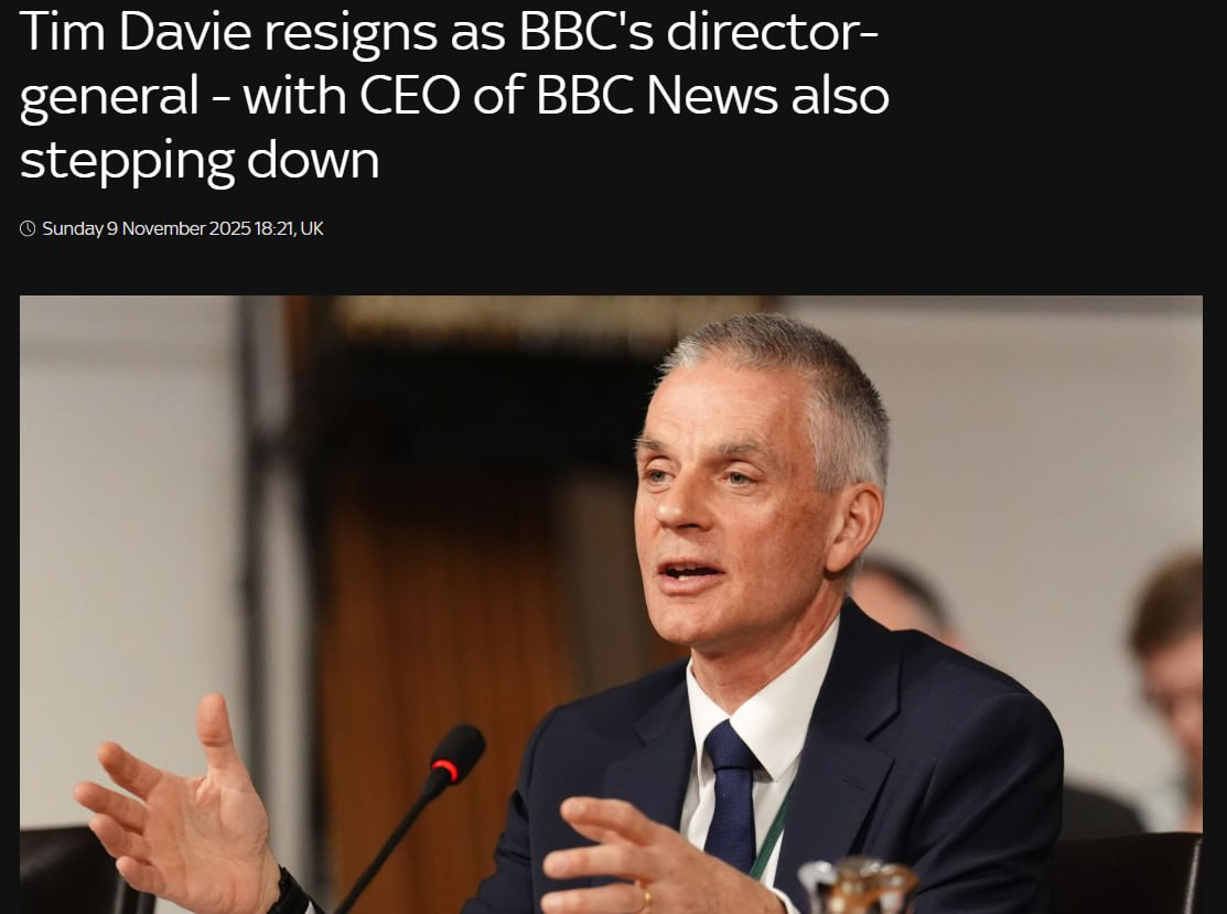 Генеральный директор BBC Тим Дэйви 9 ноября подал в отставку после скандала с фальсификацией речи президента США Дональда Трампа.