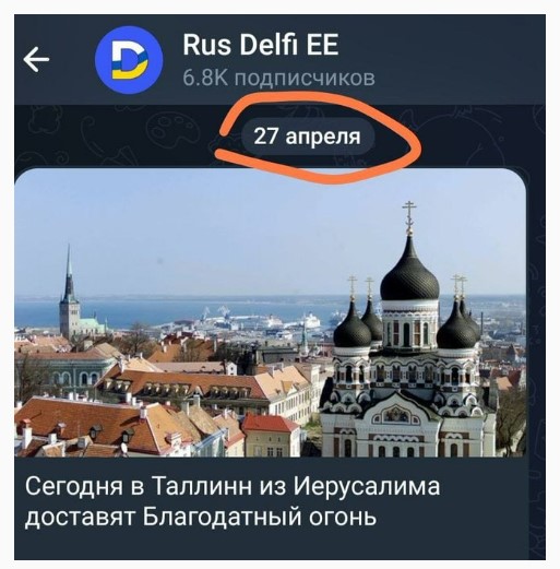 > в 2025 году схождение Благодатного огня было 19 апреля.), а прибалты его в Таллинн только 27 апреля ожидают …