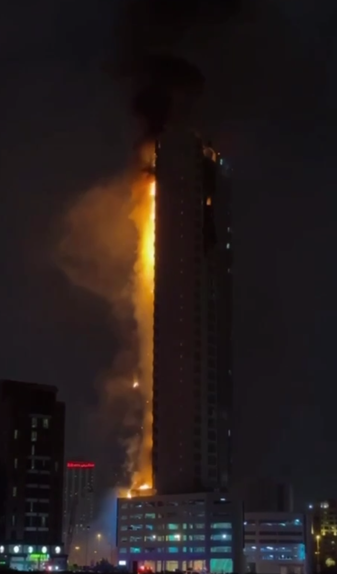 Бахрейн Самое высокое здание Бахрейна горит.