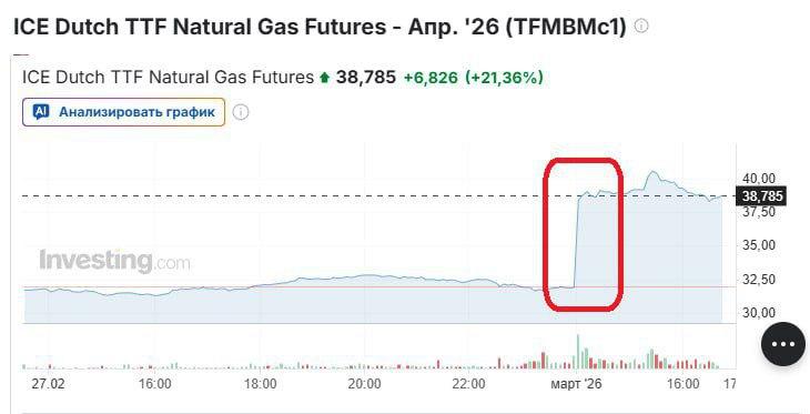 Цены на газ в Европе выросли на 50% после приостановки производства СПГ в Катаре. Давайте ещё!